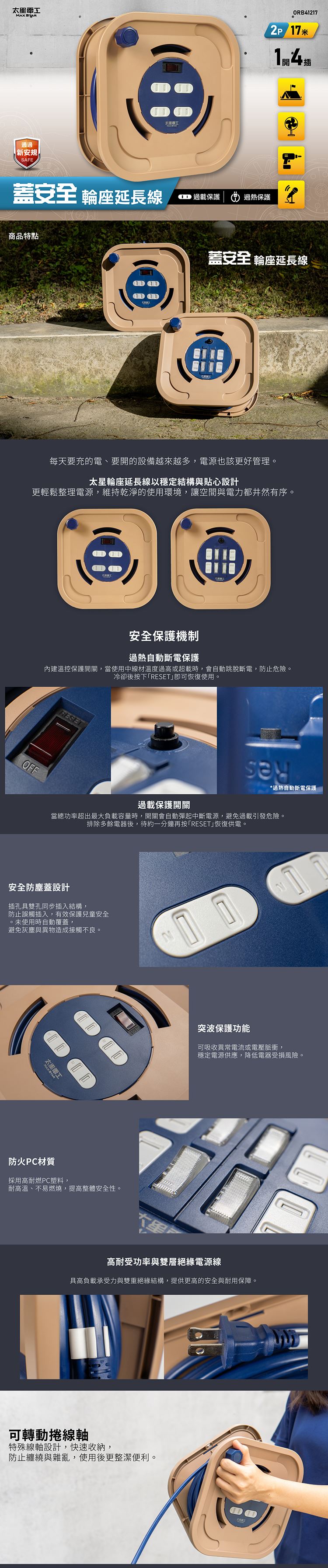 2.過載保護開關:使用中若超過最大容量負荷,過載保護器即會彈起,確保用電安全。